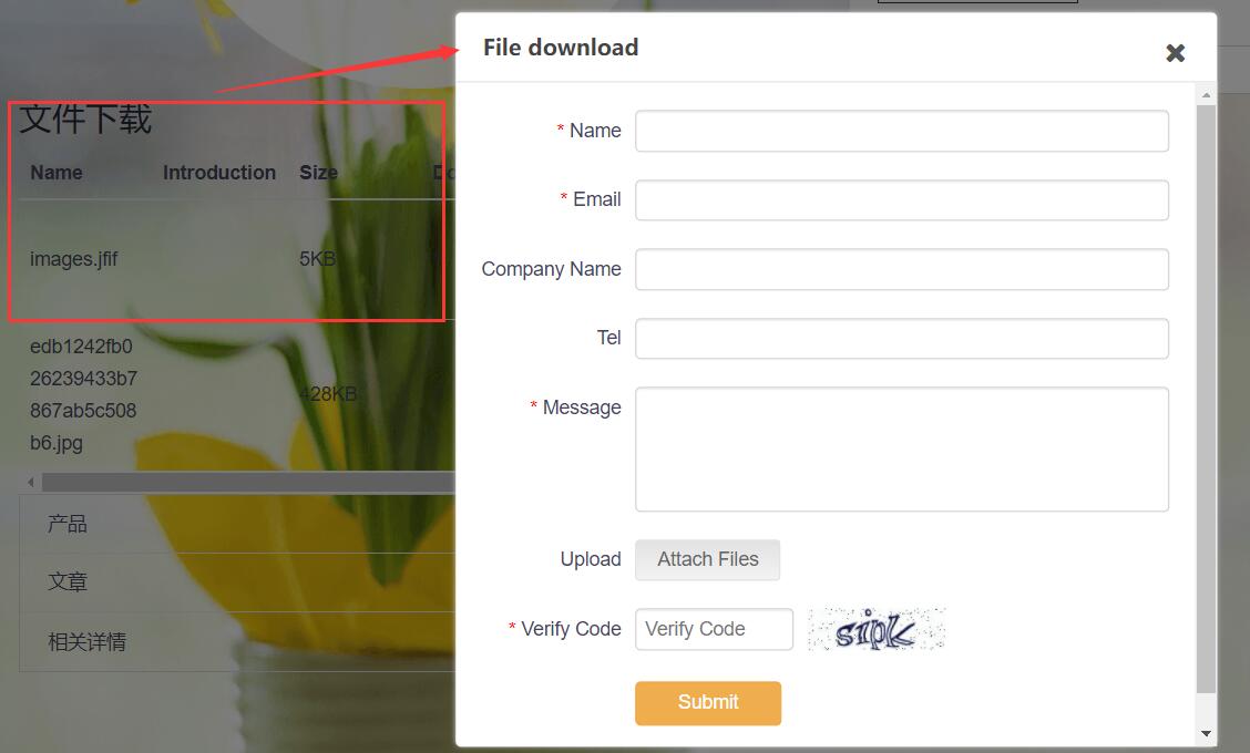 2.下载列表组件文件下载增加先填写表单资料才能下载文件的功能; (2017-12-14优化)
